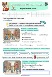 Exercices à imprimer – Les devoirs du citoyen – CM2 – EMC Education morale et civique. QUESTIONNAIRE HISTOIRE : Une sortie tant attendue 1. Complète le programme de la journée de la classe de Mme Serin. Le matin: ….. L’après-midi : ….. 2. Où vont-ils et que font-ils pendant la pause méridienne ? 3. Barre le conseil qui n’est pas…