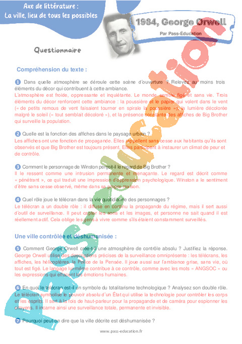 Correction Questionnaire 1984, – 4ème George Orwell – 4ème pdf