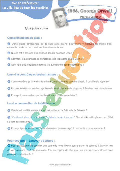 Questionnaire 1984, – 4ème George Orwell – 4ème pdf