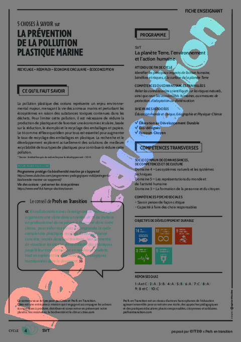 5 choses à savoir sur la prévention de la pollution plastique maritime 5ème 4ème 3ème – Citéo pdf