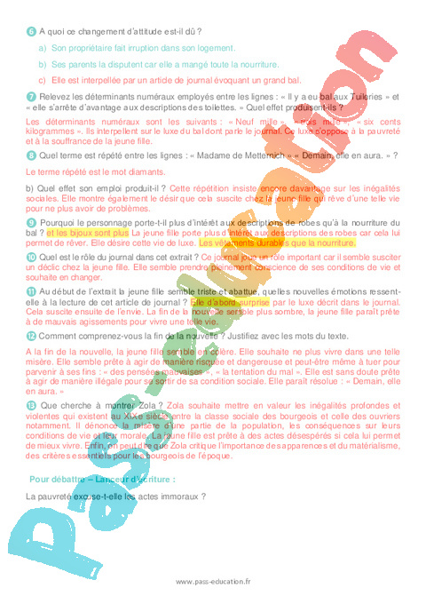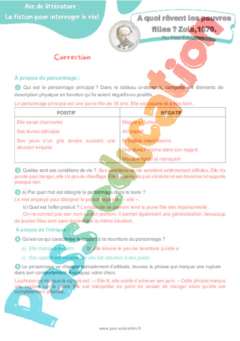 Correction 4ème Questionnaire A quoi rêvent les pauvres filles, Zola 1870 pdf