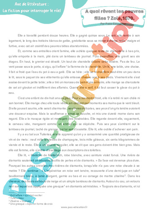 Littérature 4ème A quoi rêvent les pauvres filles, Zola 1870 pdf