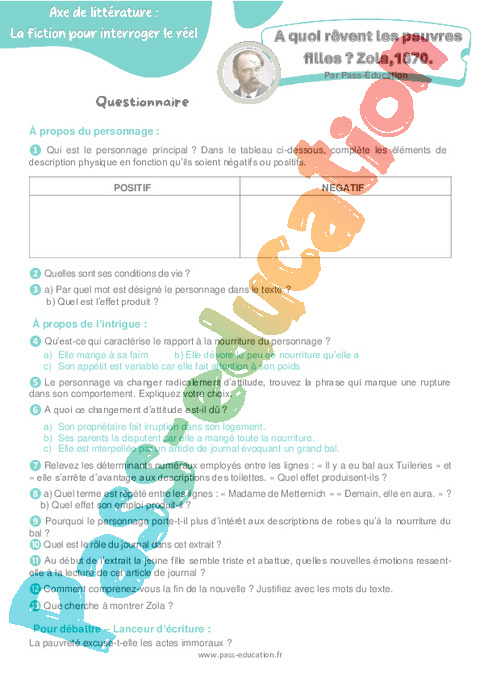 Questionnaire 4ème A quoi rêvent les pauvres filles, Zola 1870 pdf