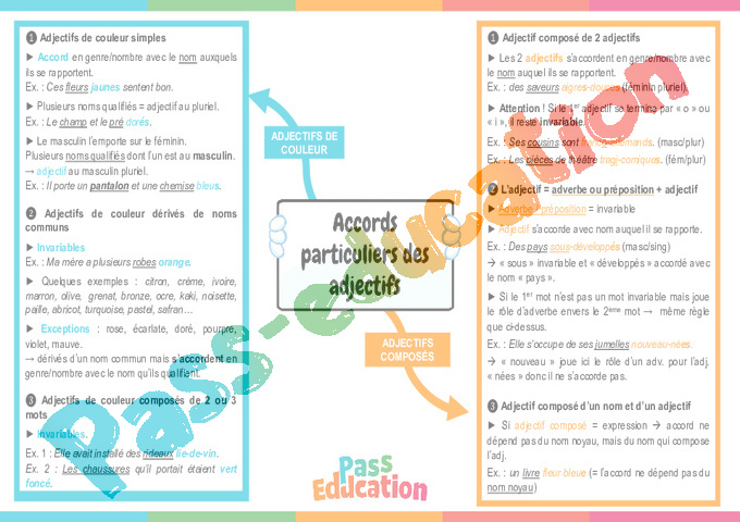 Carte mentale niveau 4ème sur les accords particuliers des adjectifs.