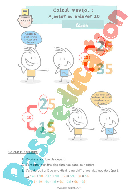 Leçon sur ajouter ou enlever 10 au CE1.