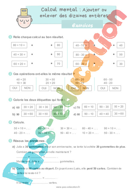 Exercices Ajouter ou enlever des dizaines entières – CE1 pdf