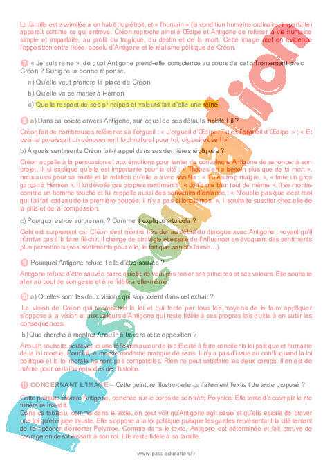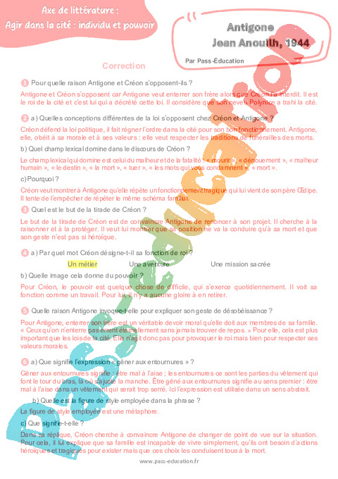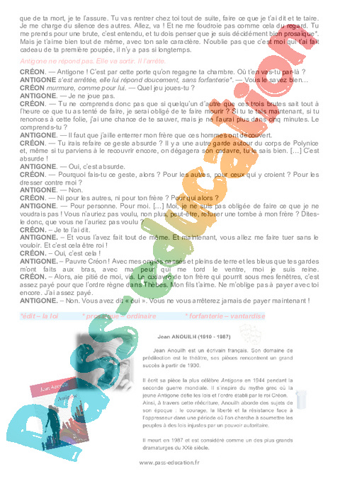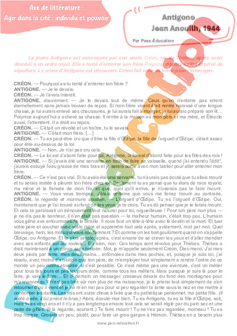 Littérature Antigone, Jean Anouilh – 3ème pdf