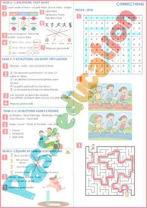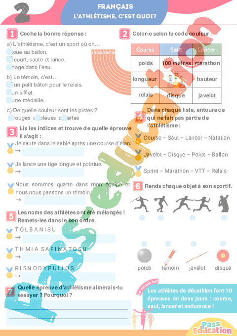 4. Dans chaque liste, entoure ce qui ne fait pas partie de l’athlétisme :