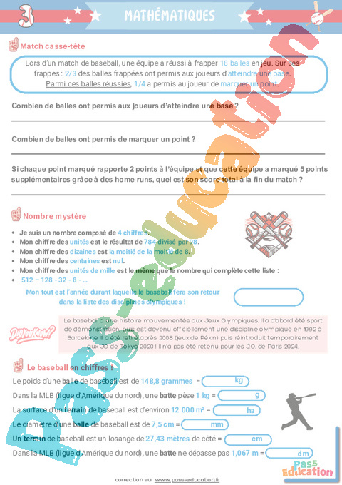 Correction Baseball Fichier – 6ème 5ème pdf