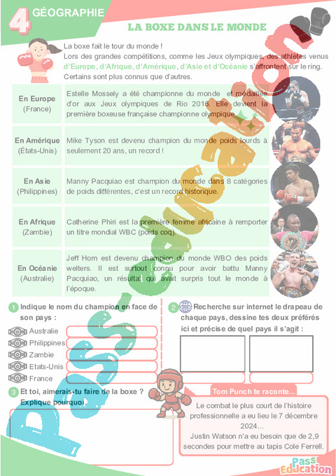 Cahier de vacances sur la Boxe à imprimer.