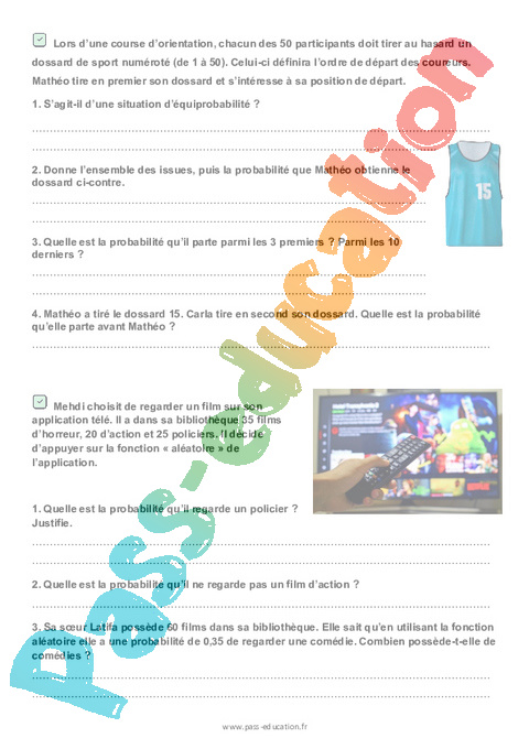 Lors d’une course d’orientation, chacun des 50 participants doit tirer au hasard un dossard de sport numéroté (de 1 à 50). Celui-ci définira l’ordre de départ des coureurs.