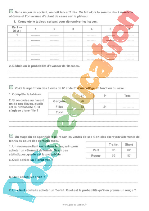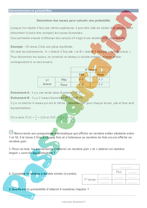 Calculer une probabilité – 3ème – Brevet des collèges Mon Pass Maths pdf