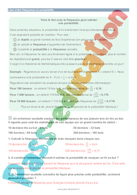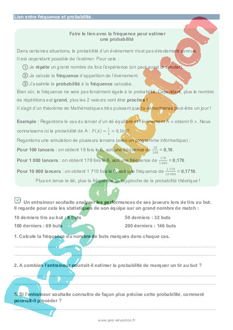 - Lien entre fréquence et probabilité.
