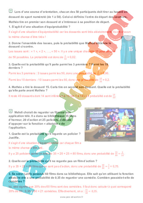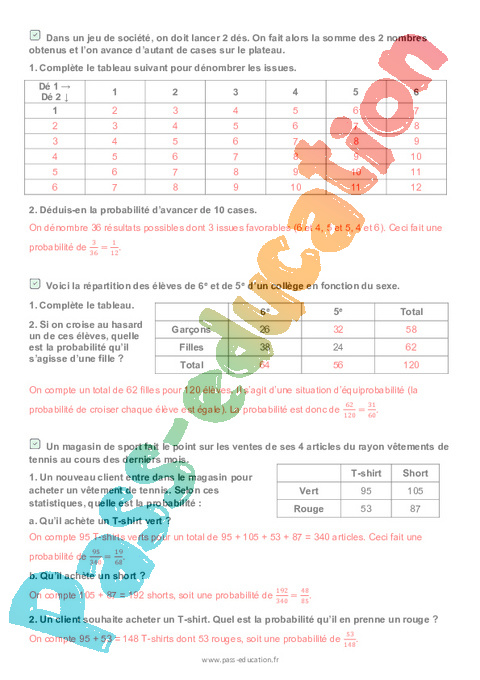 Correction Calculer une probabilité – 3ème – Brevet des collèges Mon Pass Maths pdf