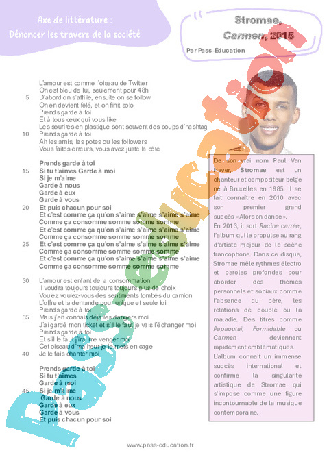 Littérature Carmen (Stromae) – 3ème pdf