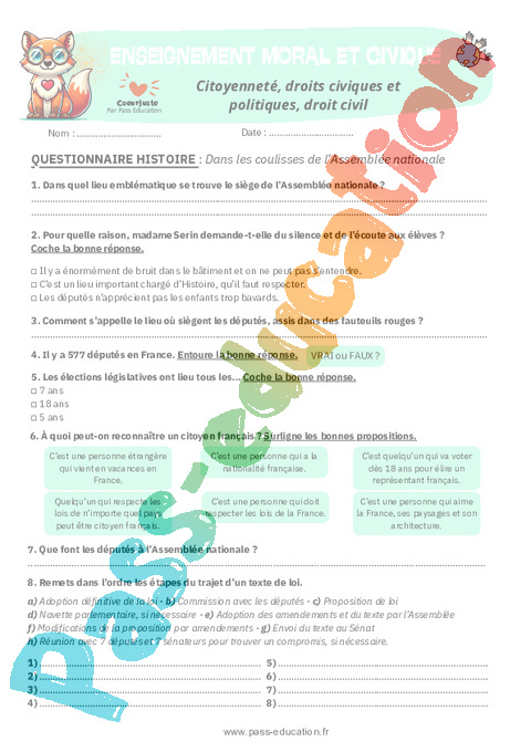3. Questionnaire histoire – Citoyenneté, droits civiques et politiques, droit civil – Cm2 pdf