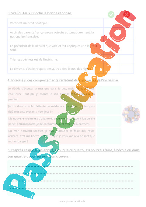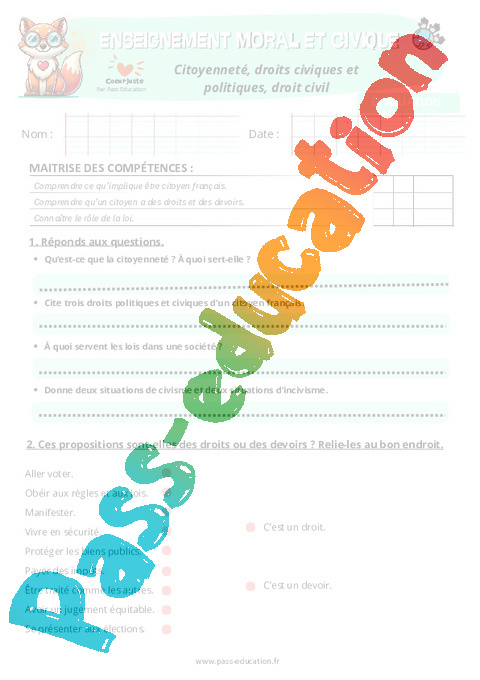 4. Fiche élève Citoyenneté, droits civiques et politiques, droit civil – Cm2 pdf