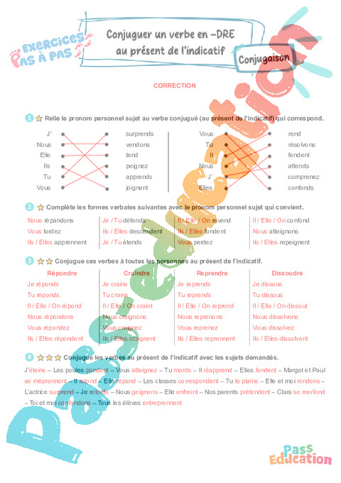 Correction Conjuguer les verbes en -dre au présent de l’indicatif – CE2 – Exercices Pas à Pas rtf
