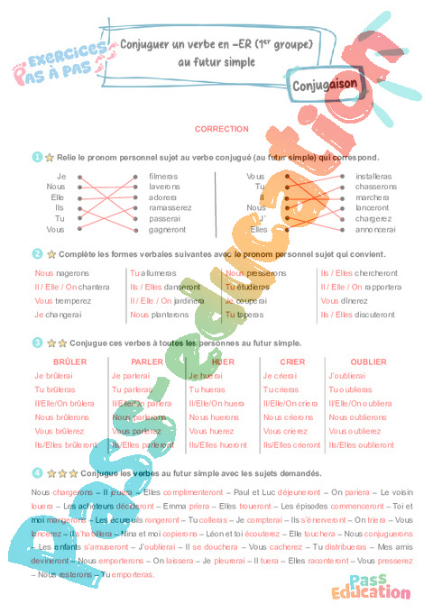 Correction Conjuguer un verbe en -ER (1er groupe) au futur simple – CE2 – Exercices Pas à Pas rtf