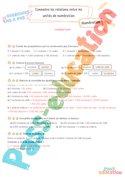 Correction Connaitre les relations entre les unités de numération – CM2 – Exercices Pas à Pas pdf