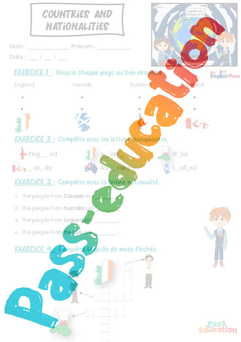 Correction Exercices Countries and Nationalities – Vocabulaire Kelly and James pdf