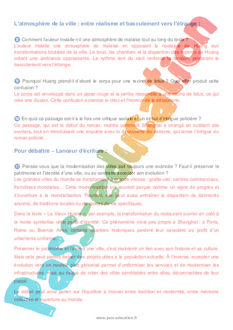 ❷ Comment Huang perçoit-il les transformations de Shanghai ? Justifie avec une citation.