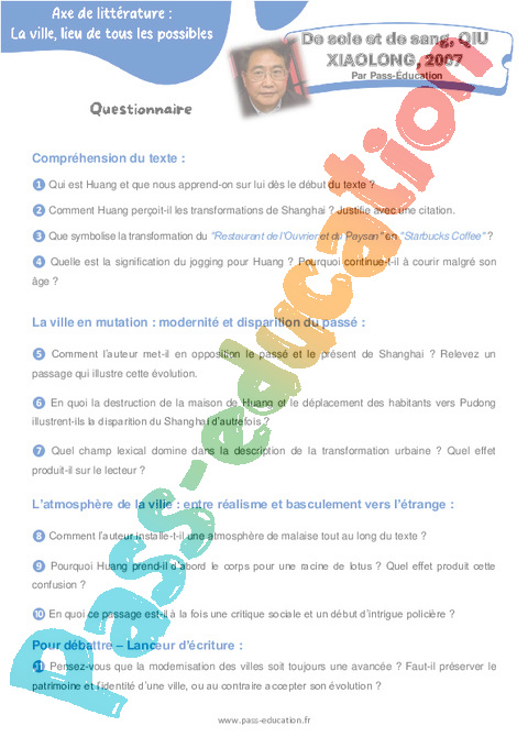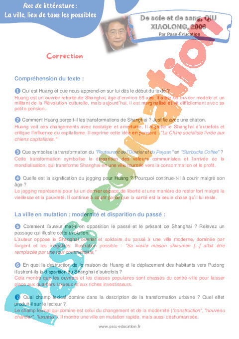 Correction Questionnaire De soie et de sang, – 4ème QIU XIAOLONG pdf