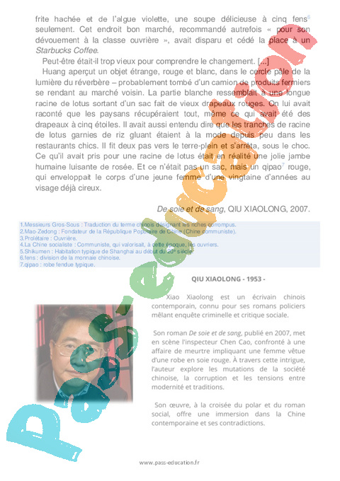 Questionnaire De soie et de sang, – 4ème QIU XIAOLONG pdf