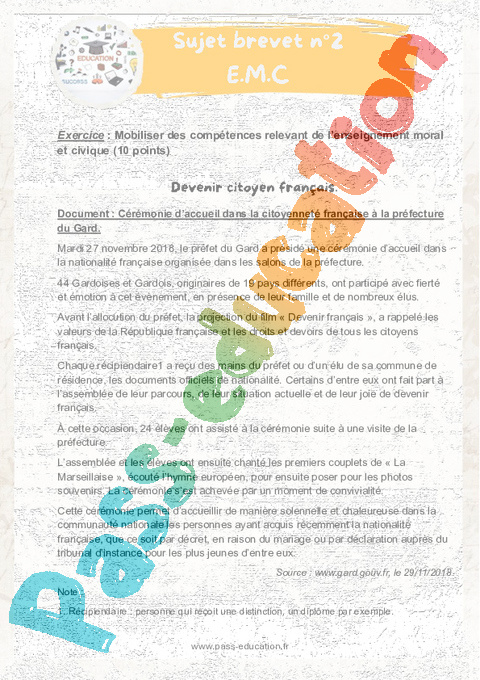 2 Devenir citoyen français Sujets et corrigés du Brevet EMC pdf