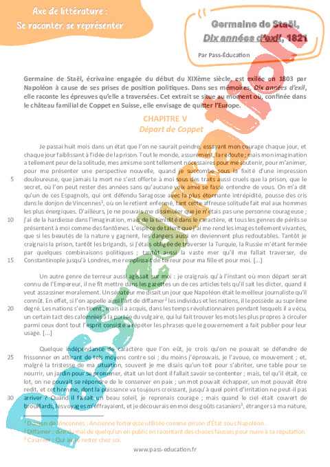 Littérature Dix années d’exil (Germaine de Staël) – 3ème pdf