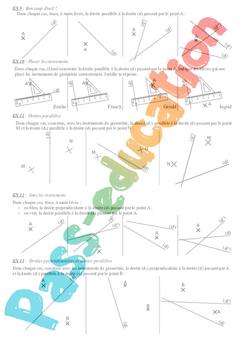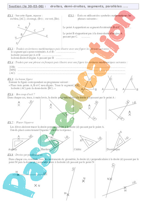 Droites, demi-droites, segments, parallèles ….. – 6ème – Géométrie – Exercices – Soutien scolaire – Fiches de révisions – Collège