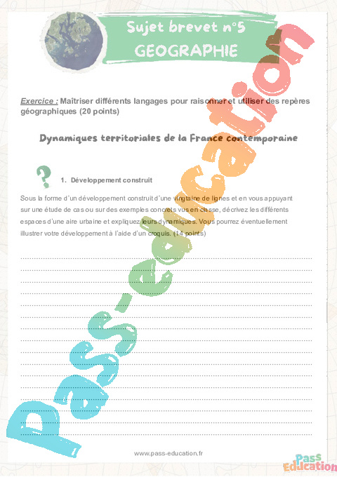 5 Dynamiques territoriales de la France contemporaine Sujets et corrigés du Brevet Géographie rtf
