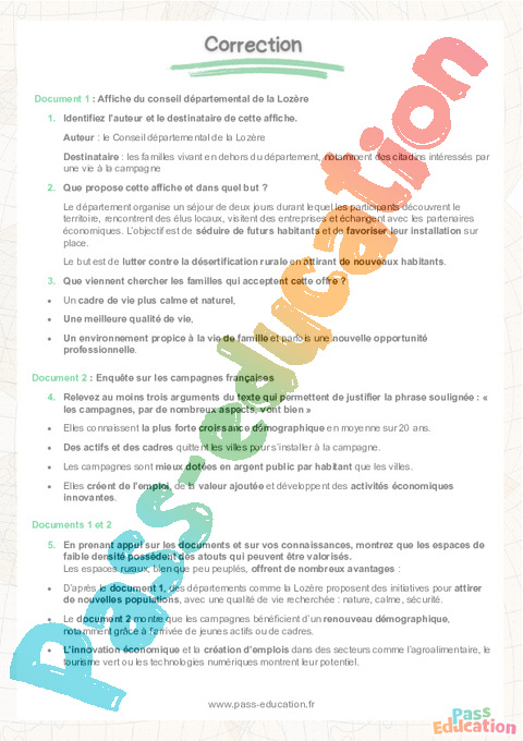 • D’après le document 1, des départements comme la Lozère proposent des initiatives pour attirer de nouvelles populations, avec une qualité de vie recherchée : nature, calme, sécurité.