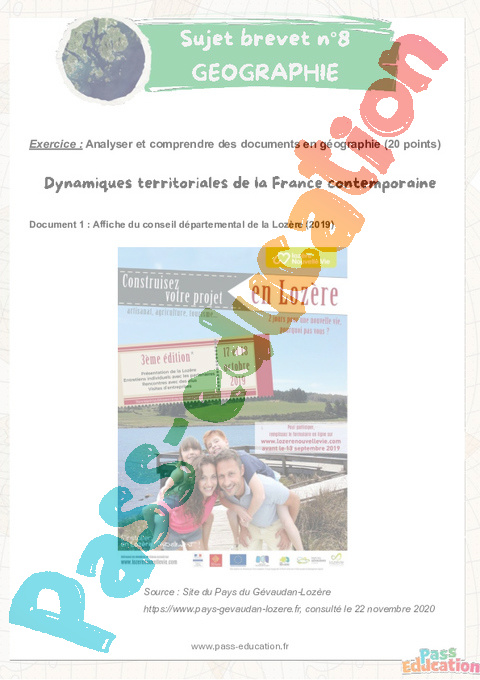 8 Dynamiques territoriales de la France contemporaine Sujets et corrigés du Brevet Géographie pdf