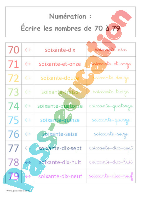 Ecrire les nombres de 70 à 79 – Affiche pour la classe – Cp – Cycle 2 pdf