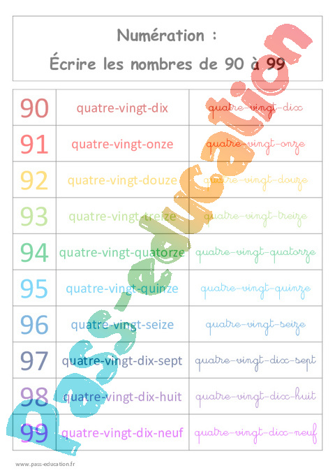 Ecrire les nombres de 90 à 99 – Affiche pour la classe – Cp – Cycle 2 pdf