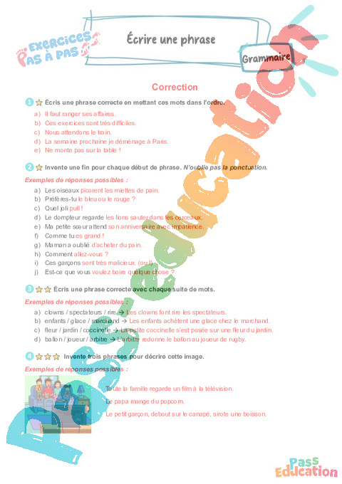 Correction Écrire une phrase – CE2 – Mémo + Exercices Pas à Pas pdf