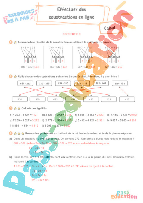 Correction Effectuer des soustractions en ligne – CE2 – Exercices Pas à Pas pdf