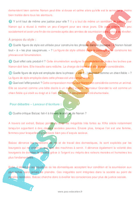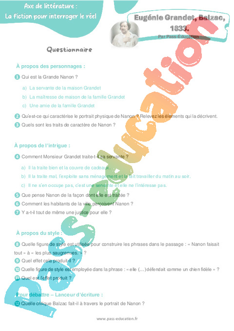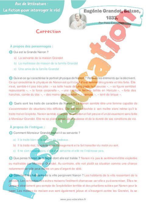 Correction Questionnaire 4ème Eugénie Grandet, Balzac, 1833 pdf
