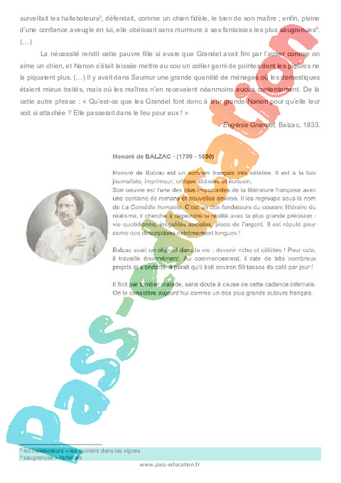 Littérature 4ème Eugénie Grandet, Balzac, 1833 rtf