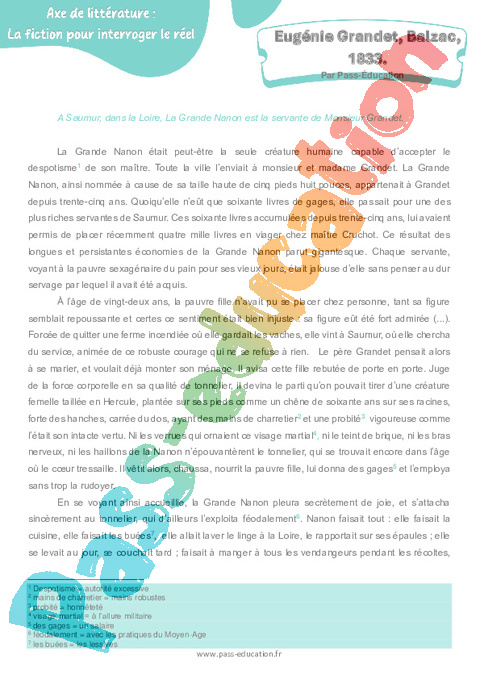 Littérature 4ème Eugénie Grandet, Balzac, 1833 pdf