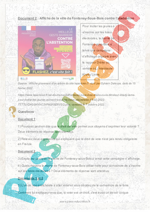 4) Quels moyens la mairie de Fontenay-sous-Bois utilise-t-elle pour convaincre de s’inscrire sur les listes électorales ? Deux éléments de réponse sont attendus.