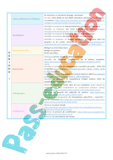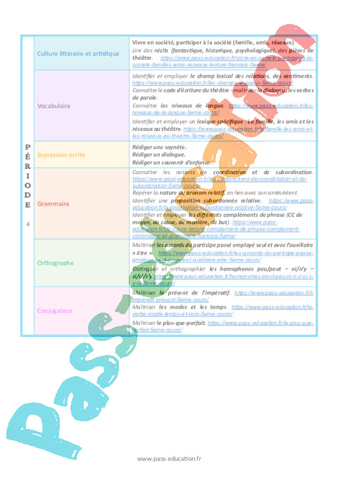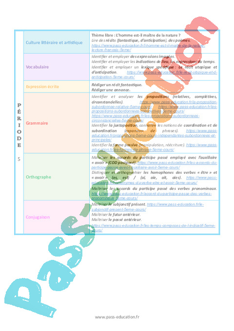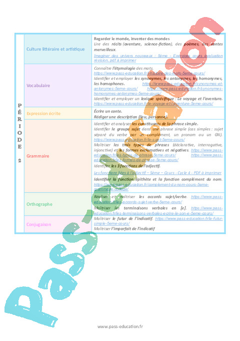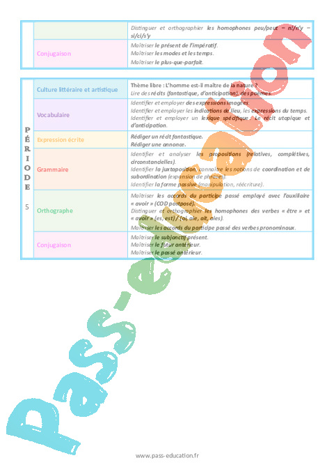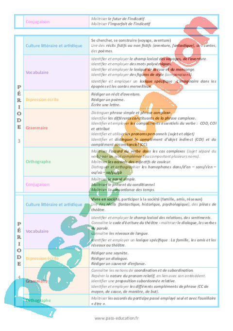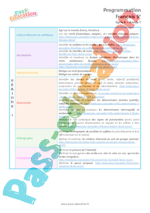 Progression programmation – Français (Période 1 à période 5)