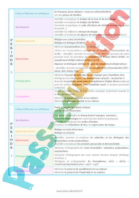 Progression programmation – Français (Période 1 à période 5)