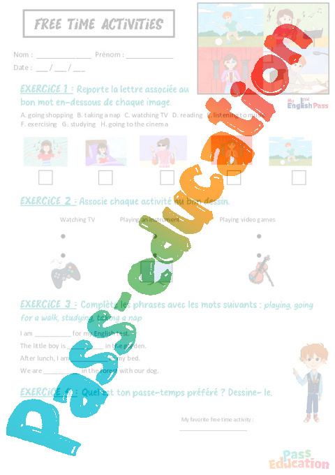 Exercices Free time activities - Apprends l'anglais avec Kelly and James pdf