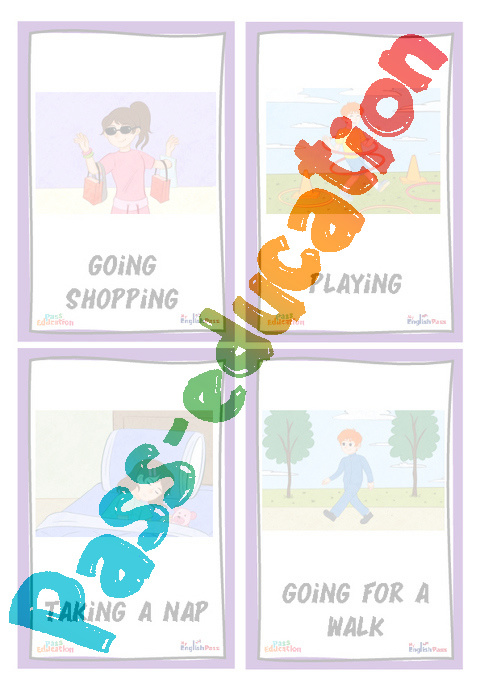 Exercice 3 : Complète les phrases avec les mots suivants : playing, going for a walk, studying, taking a nap