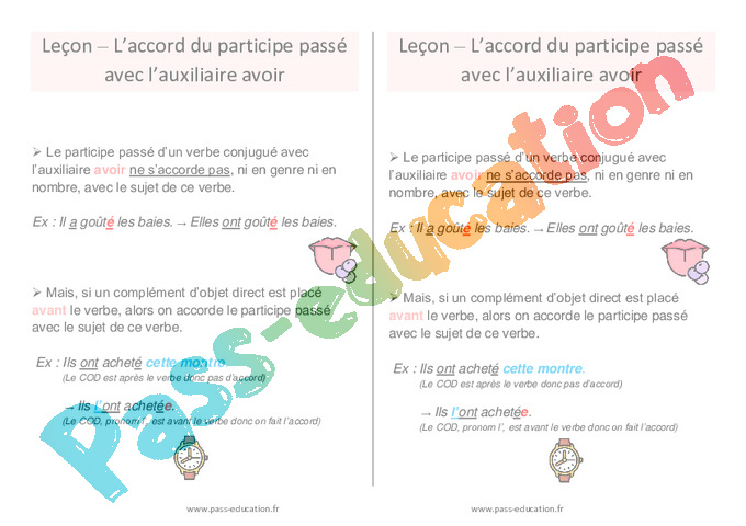 | Leçon à apprendre : L’accord du participe passé avec avoir |