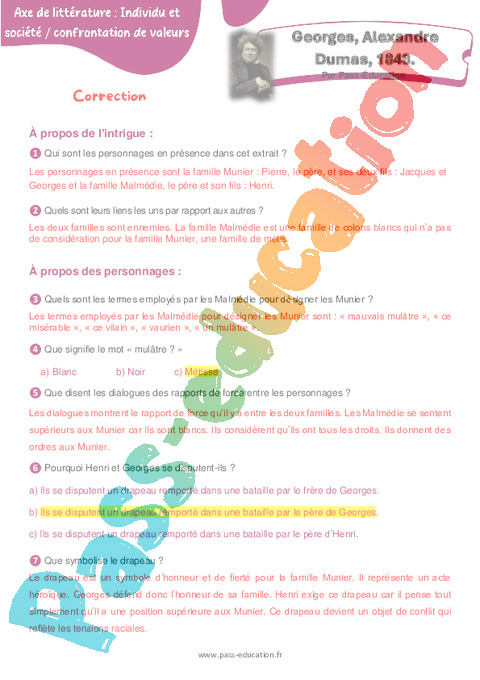 Correction Questionnaire – 4ème Georges (Alexandre Dumas) rtf