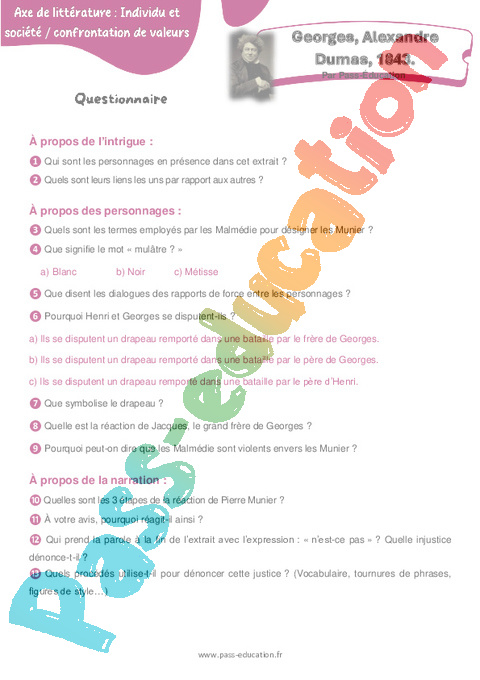 Questionnaire – 4ème Georges (Alexandre Dumas) pdf