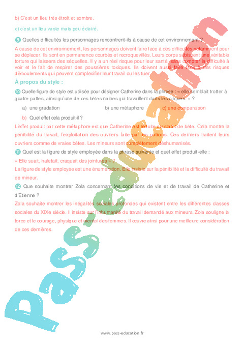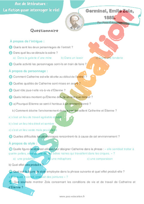 Questionnaire 4ème Germinal, Emile Zola,1885 pdf